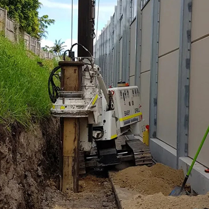 We can drill from .300mm to 3 metres in diameter and up to 30 metres in depth. We have 10 rigs available and 10 to 30t excavators with various attachments and specialised heads. The design of these machines and augers is our passion and we always strive to choose just the right one for the job. Doug and Jason are used to working on difficult sites and will plan out the best methodology beforehand with the head contractors.